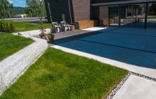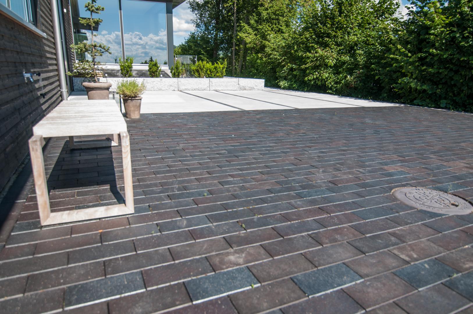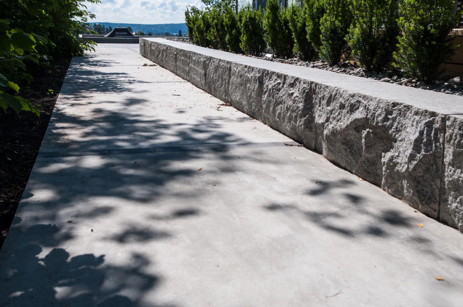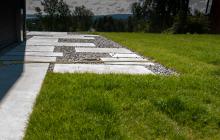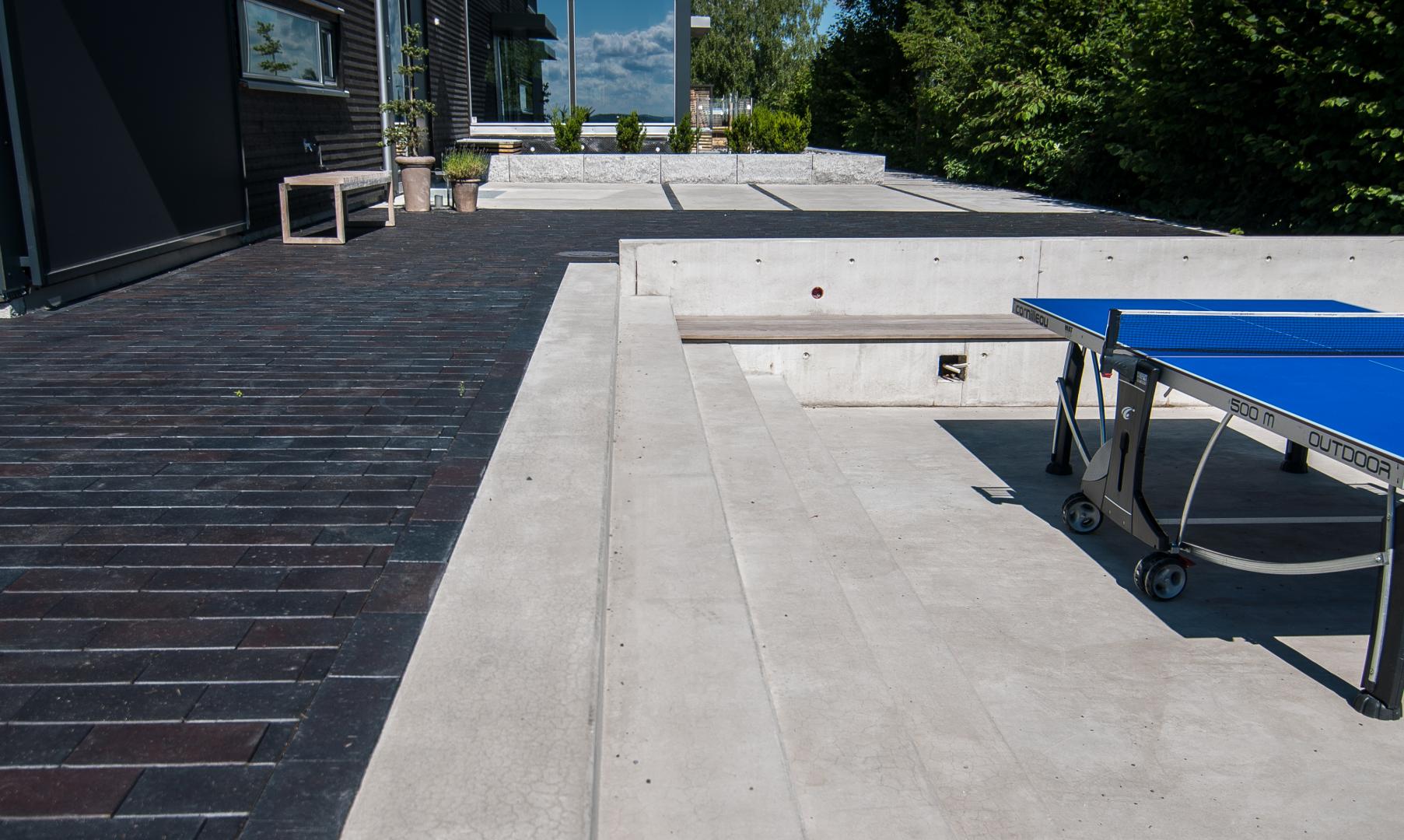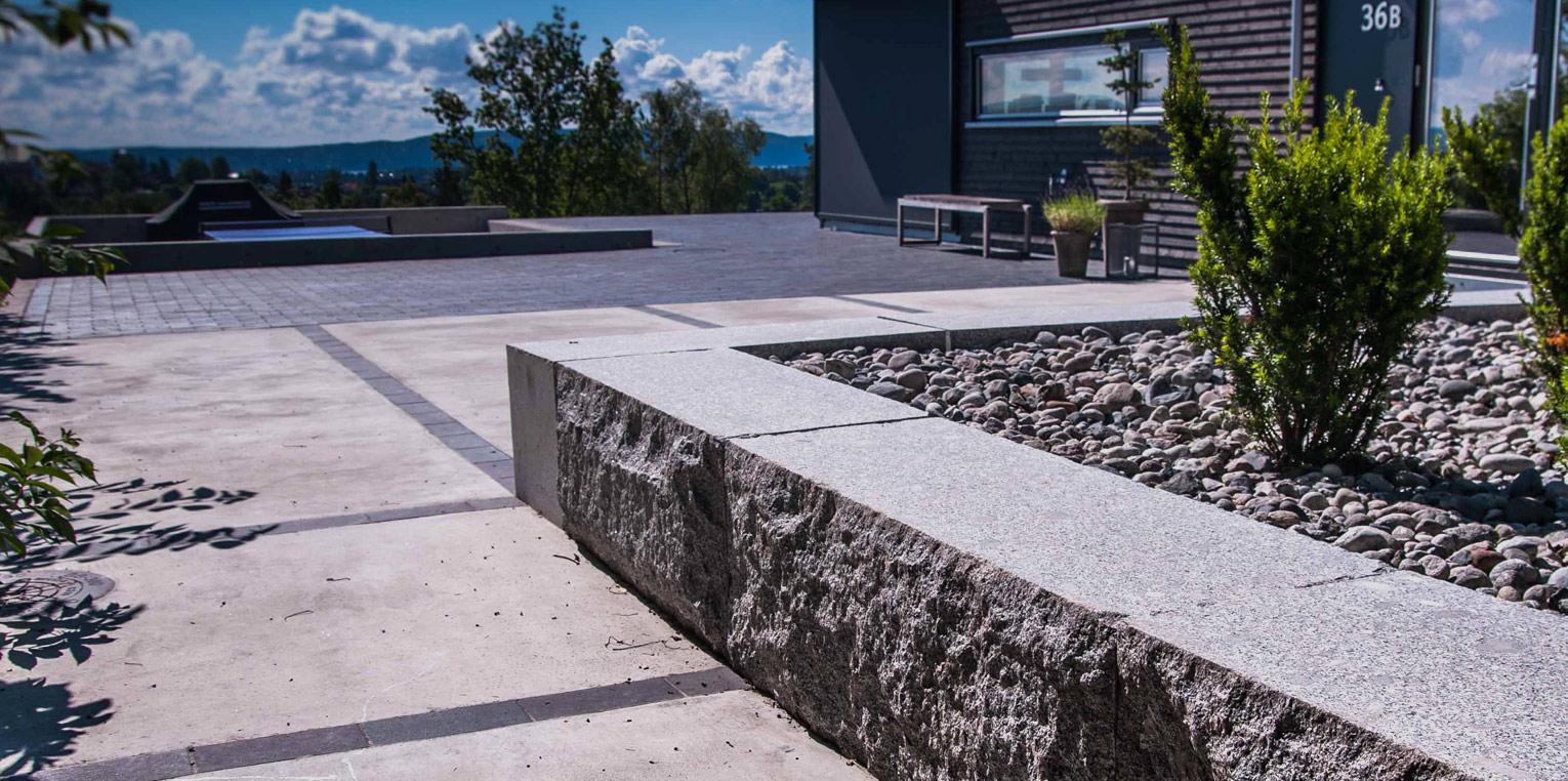 Krevende prosjekt der vi har støpt stor terrasse, trapper og sitteplass. Det ble også lagt marktegl type Terca Bretagne fra Wienerberger, bygget terrasse i Kebony SYP. Betongdekke har fine nyanser i form av striper i marktegl. Rundt støpte tråkheller er det lagt elvegrus type 16-32 fra Myrvang. Prosjektet ble tegnet av Dengin Hagedesign As.