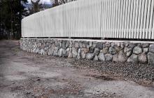 Byggherren har totalrenovert sin klassiske villa på Nordstrand og ville ha uteområde gjennomført med samme stil og kvalitet. Omfattende prosjekt der målet var å utvide innkjørsel maksimalt og samtidig fylle terrenget for å lage flat plenområde. For å oppnå dette måtte flere murer til. Den største muren ble bygget i maskinstein fra Oppdal og alle andre murer ble bygget i spesiallplukket sprengstein levert på plassen. Det ble levert og montert portstolper i granitt, smijernsport og hvitmalte gjerder type Oldemor fra Treko As. Hele gårdsplassen ble belagt med smågatestein. Slik ble det klassiske uterommet til.